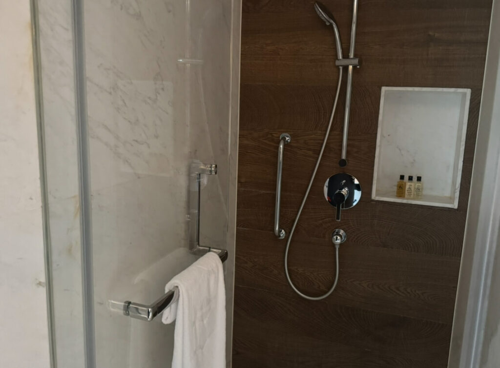 シャワールームも可動式のシャワーで、水圧も何の問題も無し!