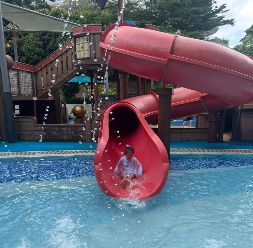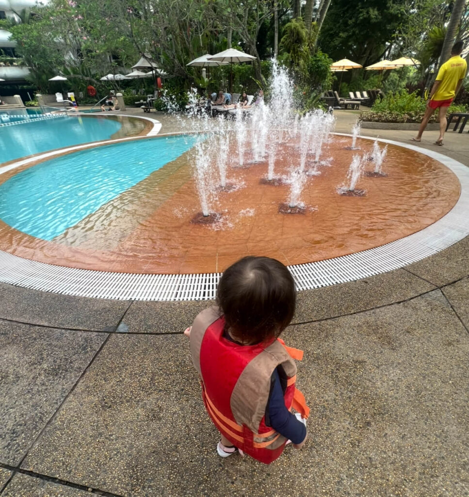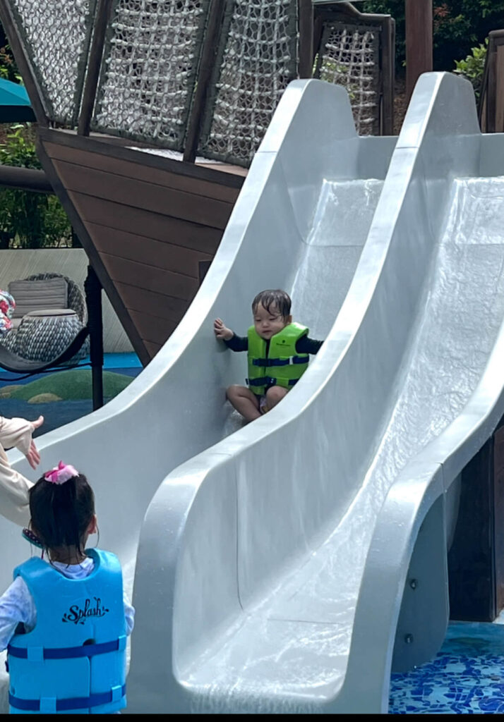 プールでしっかり遊んでくれたら深夜フライトはぐっすり眠ってくれますもんね!
