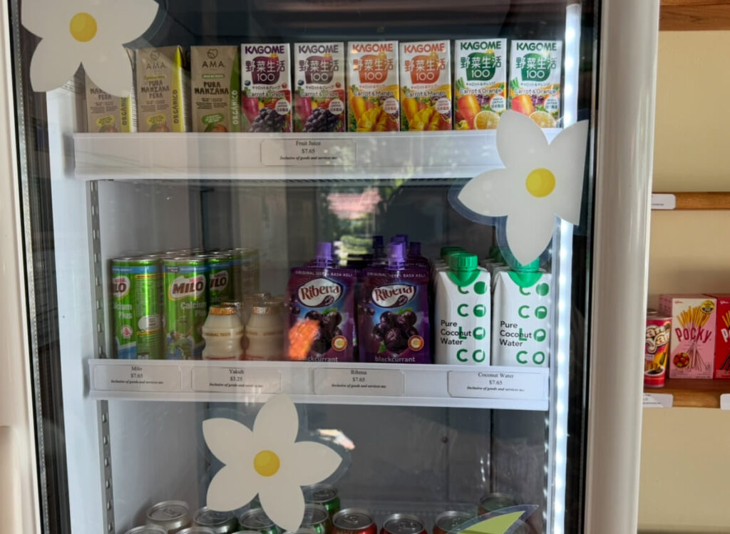 野菜生活が$7.65・・・約850円 (S$1が112円計算)の世界。
