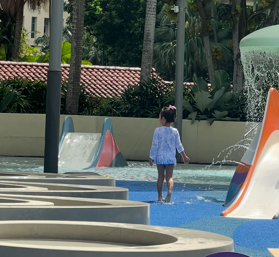 ライフガードのお兄さんが「もっと小さいサイズは、あっちのプールエリア(splash)にあるよ!」と教えてくれました。