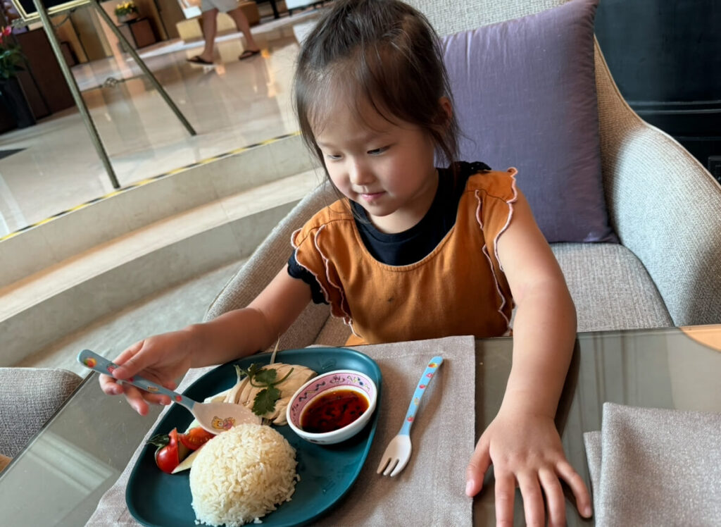シンガポール名物のチキンライス!柔らかいチキンを気に入って食べてくれました♡カトラリーも可愛い♡