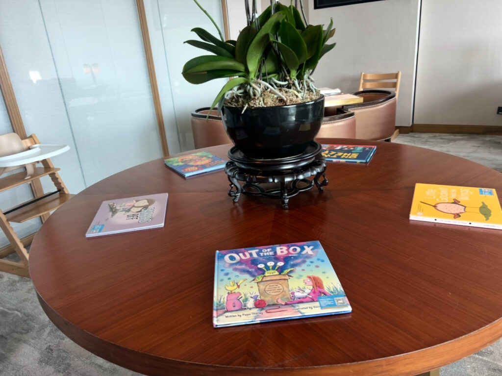 子連れに嬉しいポイントとしては、素敵なラウンジには広々としたソファー席もあり、子供用の本が置いてありました。もちろんベビーチェアや子供用のカトラリーもありましたよ!