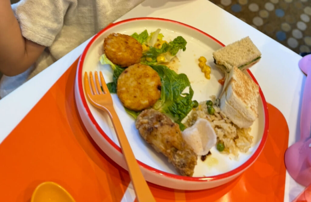 ラウンジの食事は、子供が食べれるものが少なかった為、こちらでキッズメニューも頼んでみました!