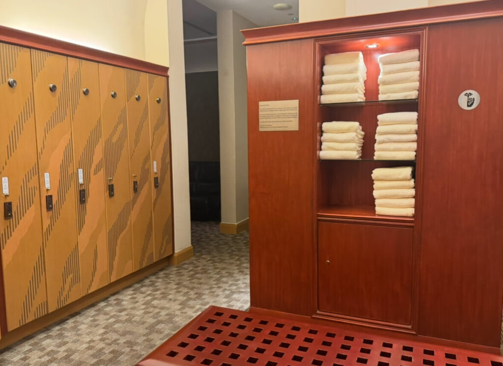 フィットネスの更衣室は広くて清潔!シャワールームやタオルも常備されています。