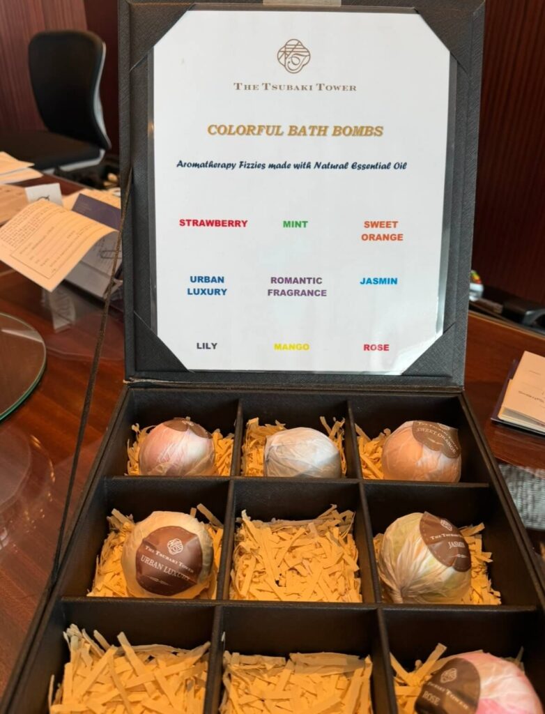 クラブラウンジを利用すると、チェックインの際にバスボールをいただきました。