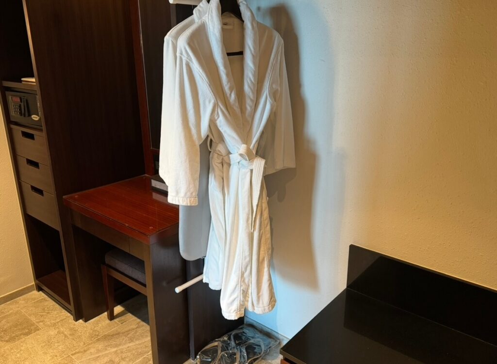 バスローブやビーチサンダル、そして撮り忘れてしまったけど、フカフカのスリッパもあります。