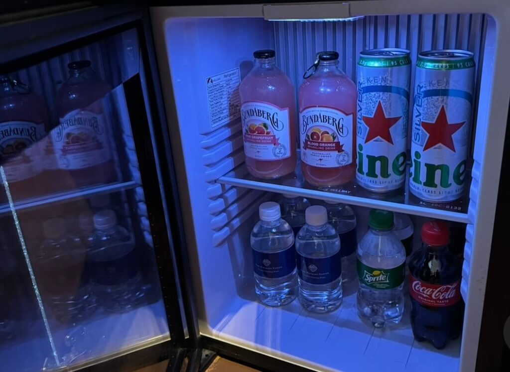 滞在中に補充はされませんが、冷蔵庫のドリンクも飲んでOKです!
