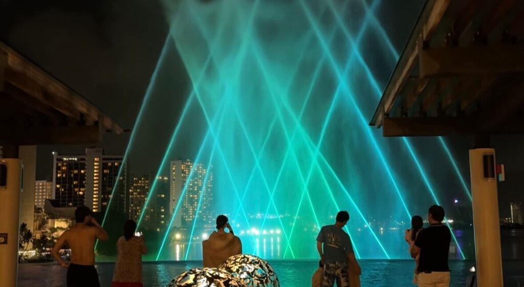 混雑していないため、落ち着いた空間で音楽と光の噴水ショーを間近に楽しめるのも魅力です。