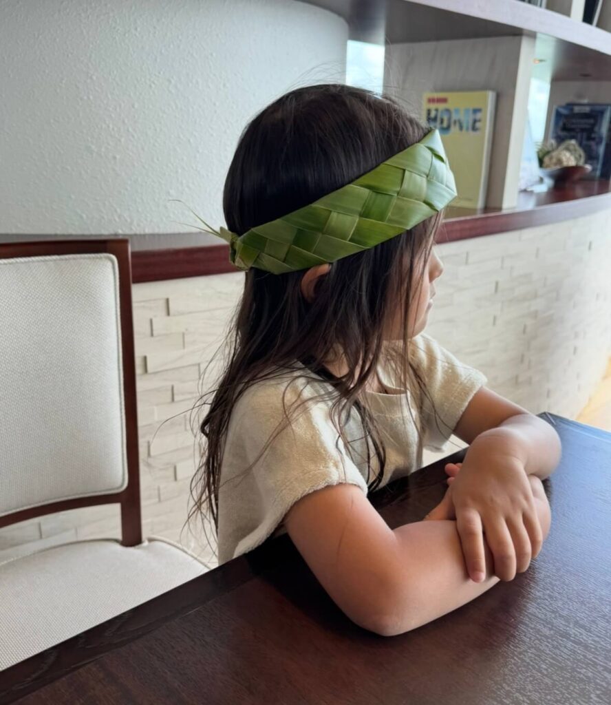 ヤシの葉を使って魚の折り方と王冠作りにチャレンジ!