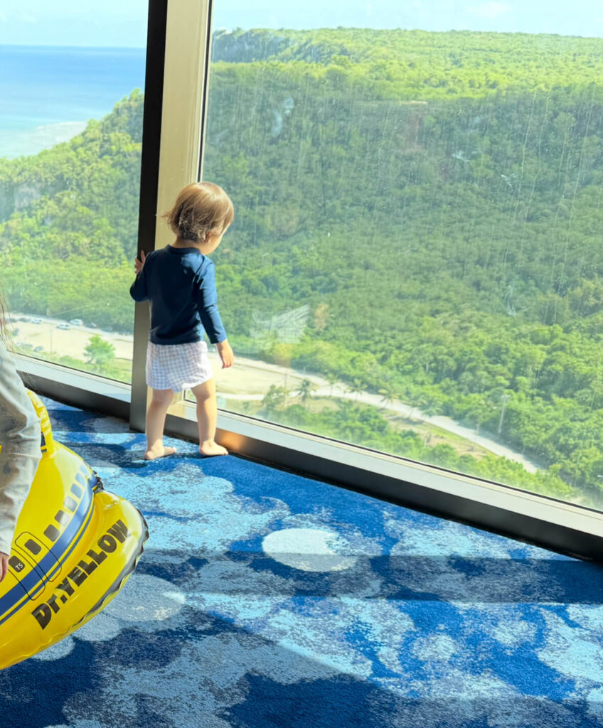 海側だけでなく、エレベーターホールから見える濃い緑の丘陵はグアムらしいダイナミックな地形も癒される♡